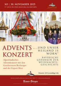 30. November 2025 17.00 Uhr (Basilika) „… und unser Heiland is worn“ – Bayerische Gedanken zur Weihnachtsgeschichte mit den Geschwistern Reitberger und der Gspusi Musi Michael Reitberger erzählt die Weihnachtsgeschichte